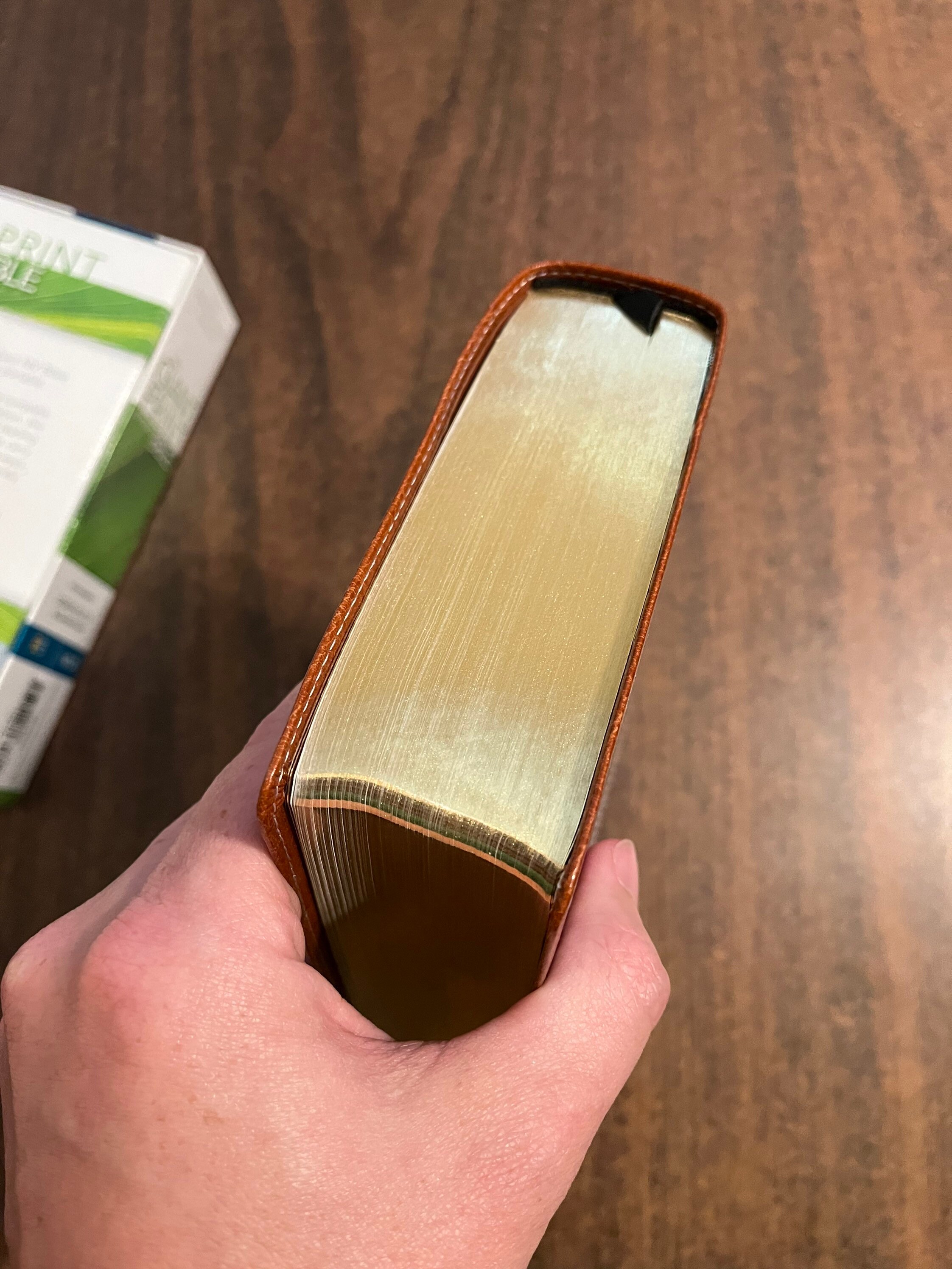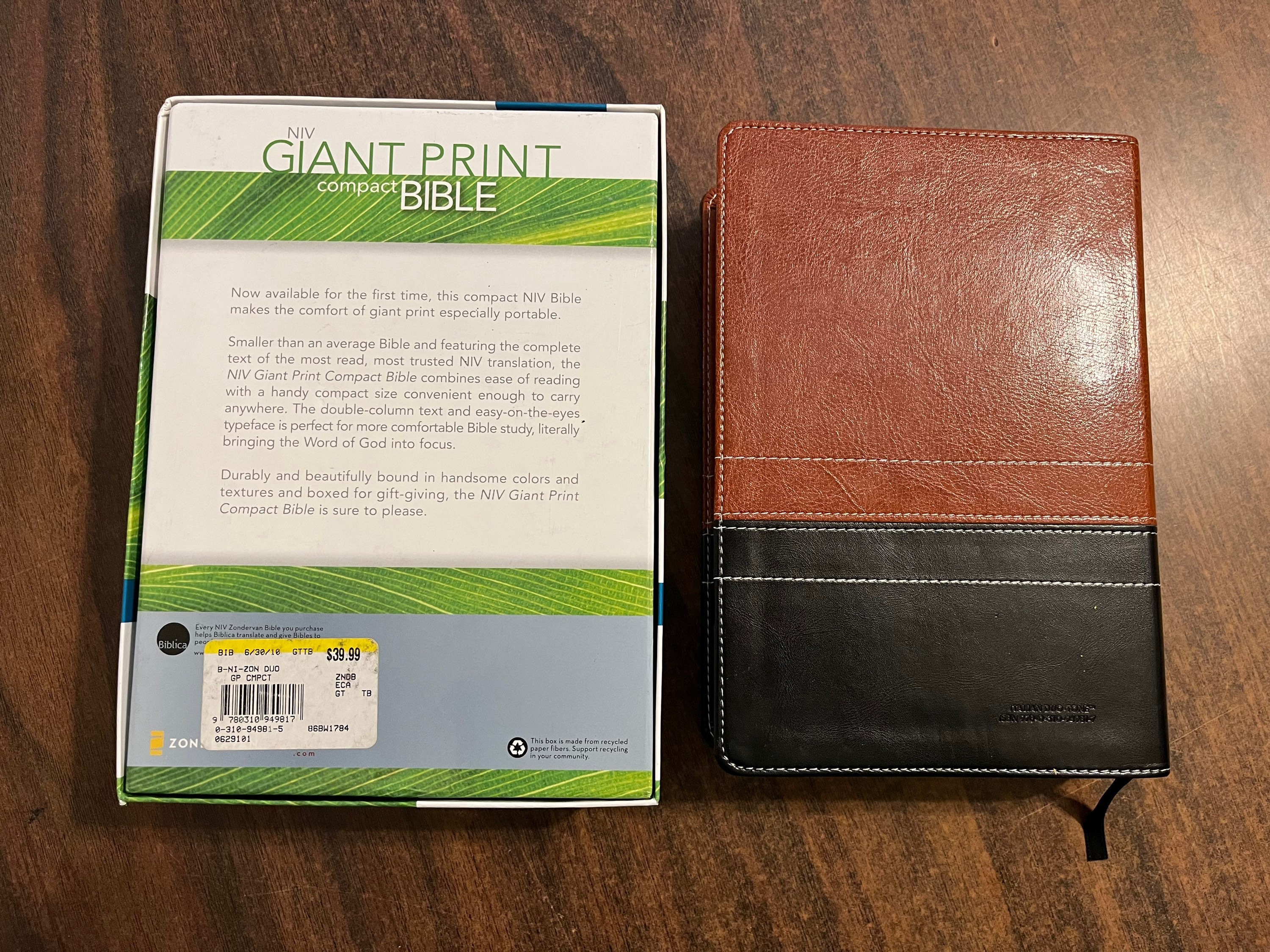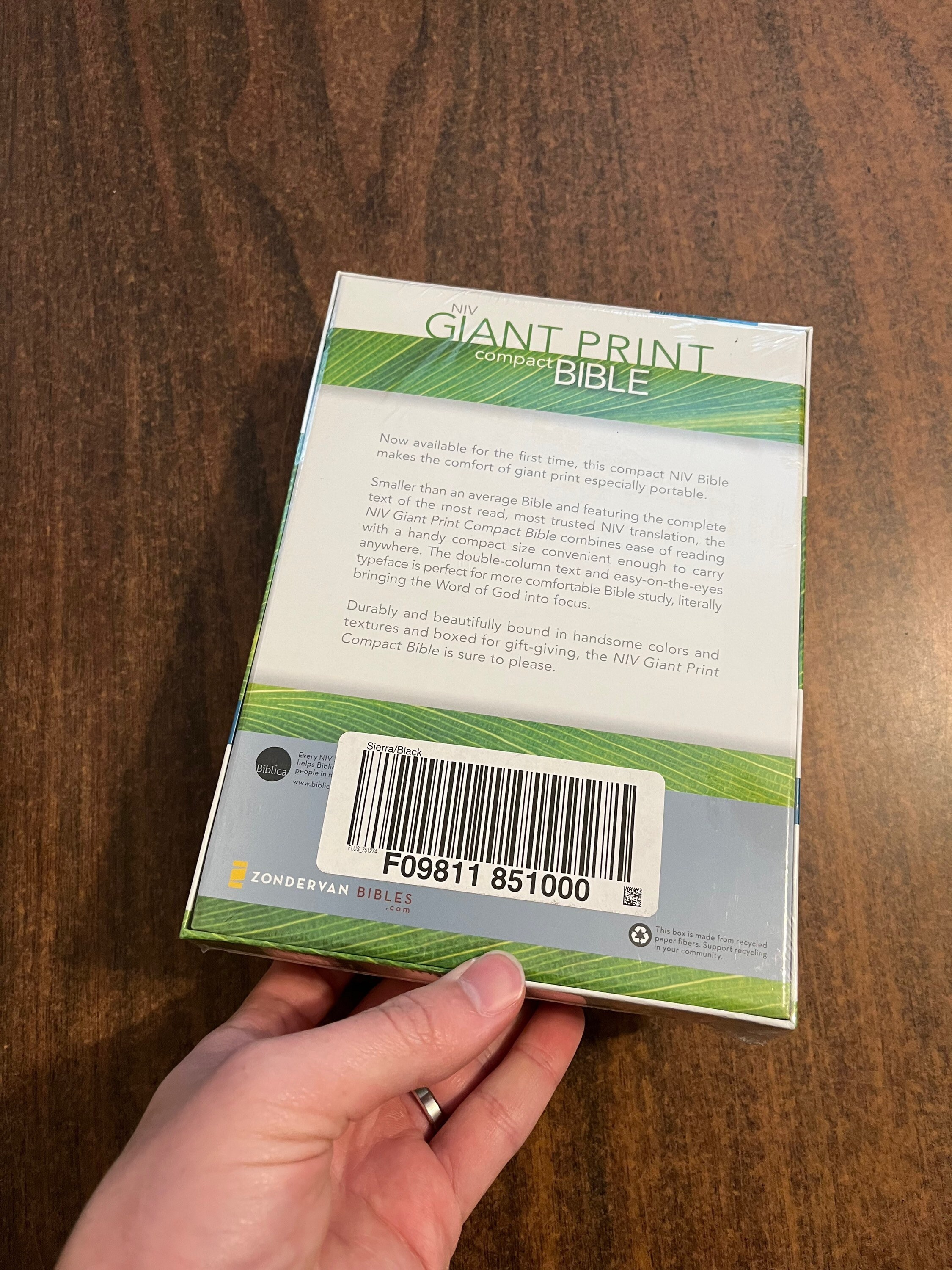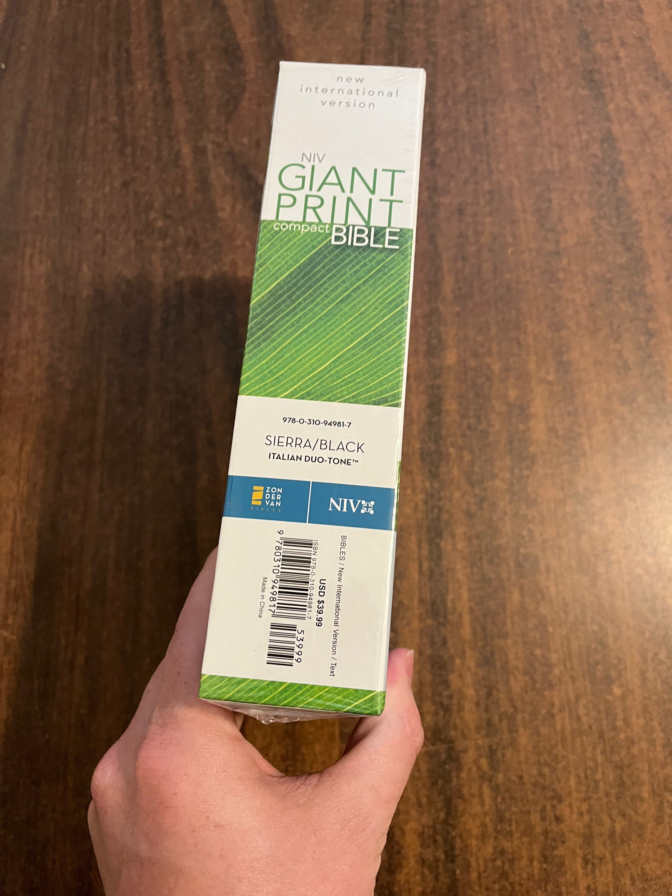 Please note that this is not the Full Size Giant print bible. Its the Giant print compact. It is a single column text, black letter. It has a fairly small frame and is a little thicker than most bibles its size.