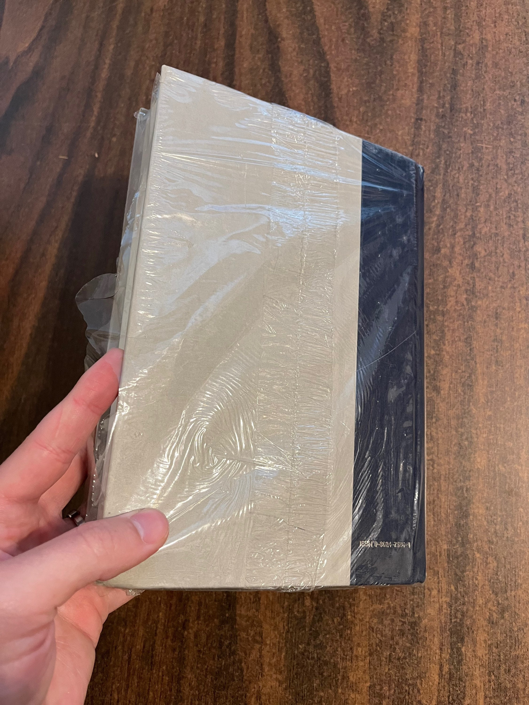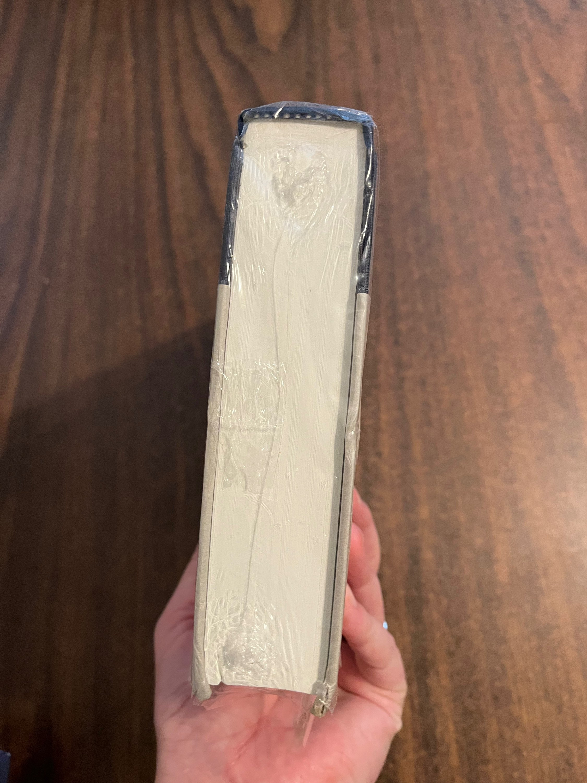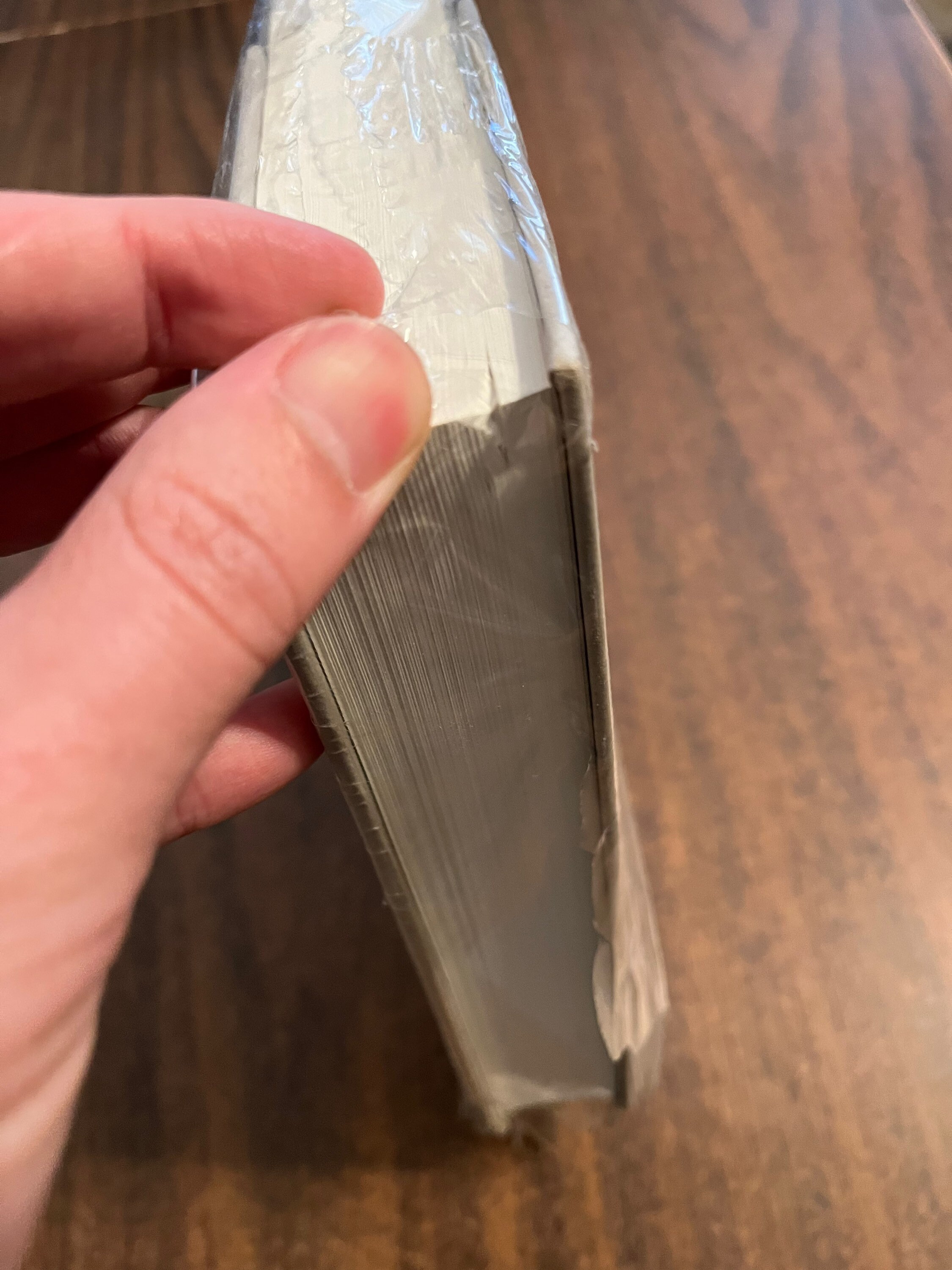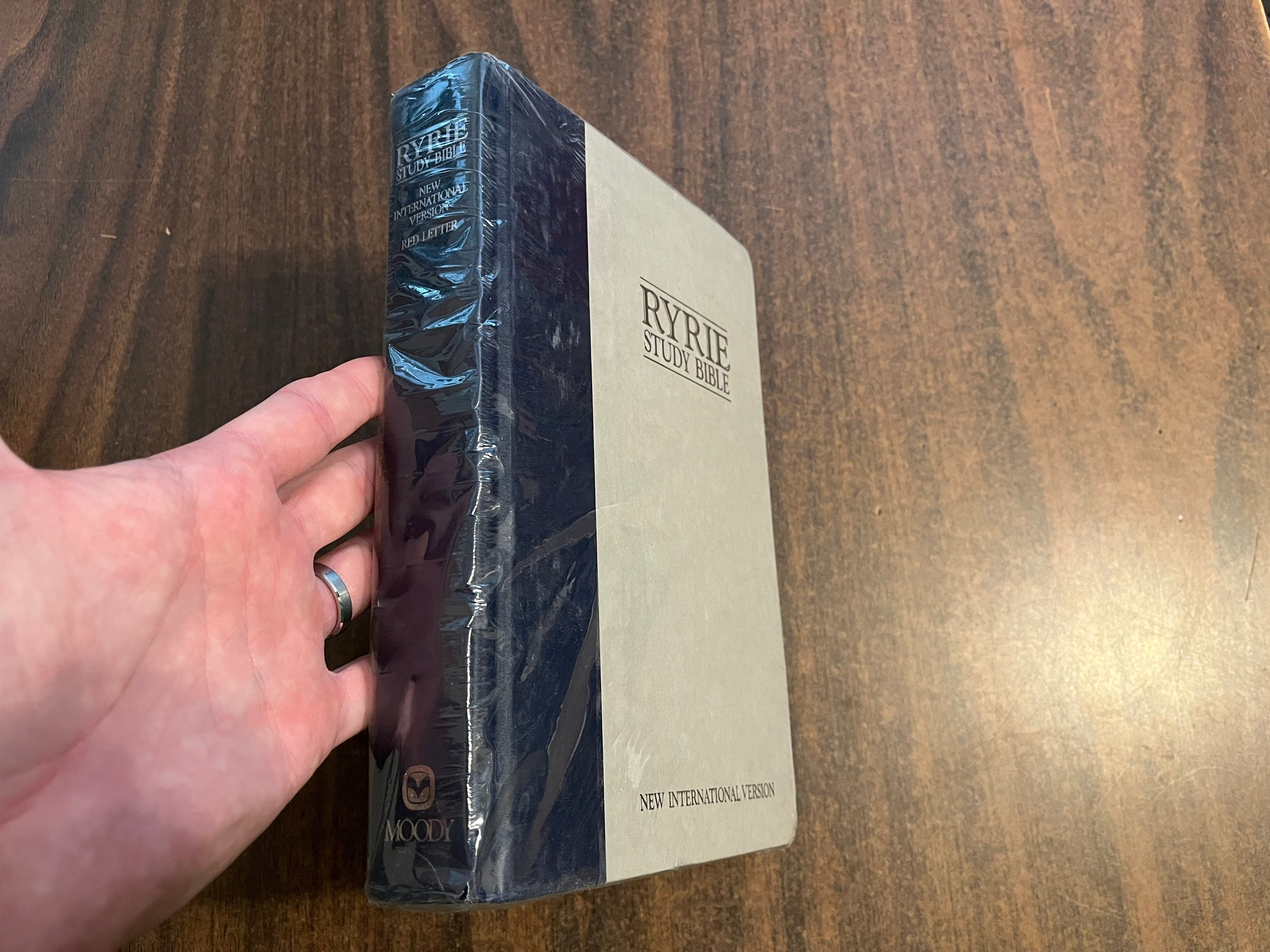 Bible is still sealed, but the plastic has been broken open in a couple places. There are a couple places where the pages have been folded/ dented in.