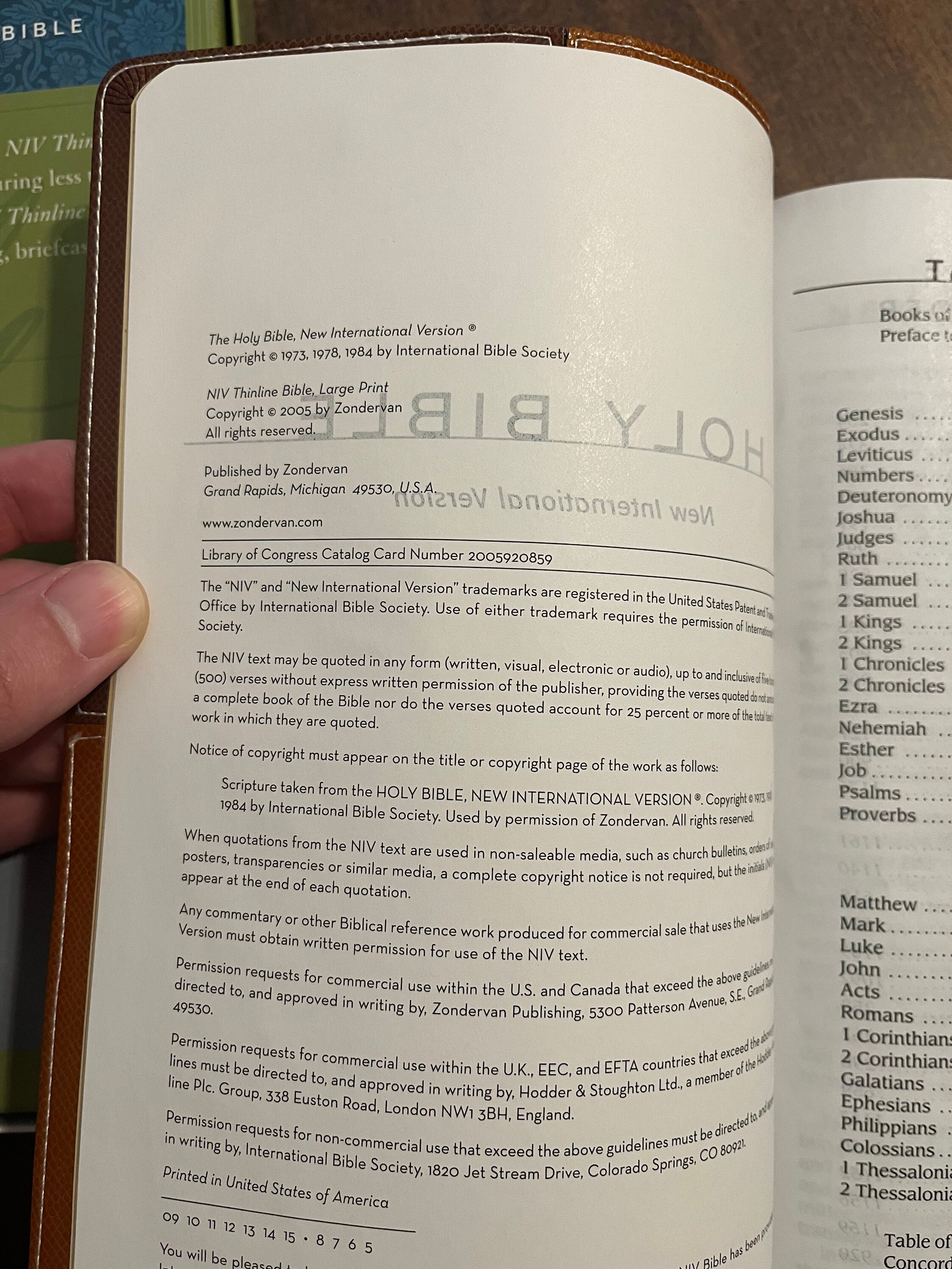 For instance there is a 1996 Large print thinline and a 2005 Large print thinline. The font and layout of these editions are different but the wording of the NIV Text is unchanged.
