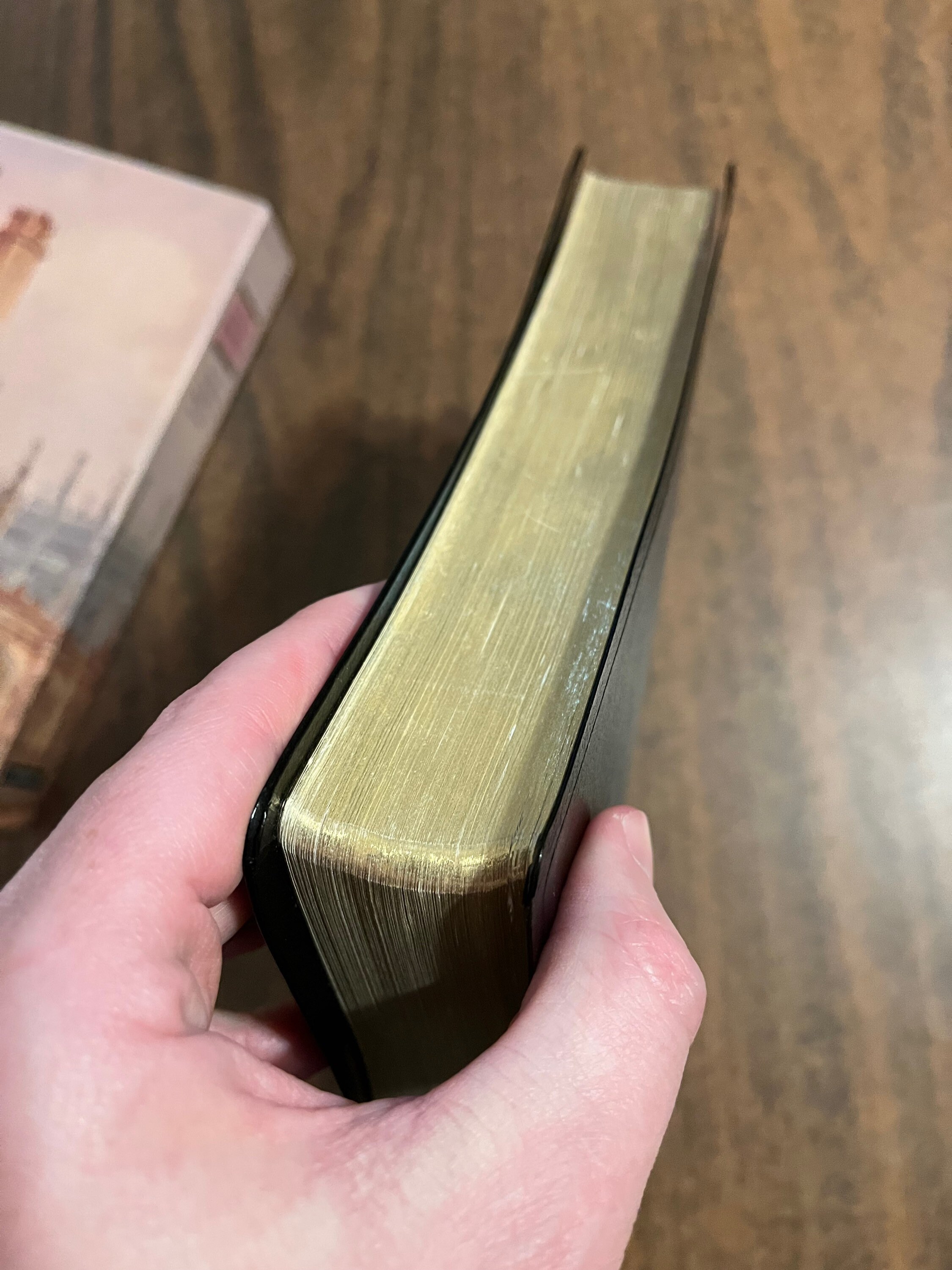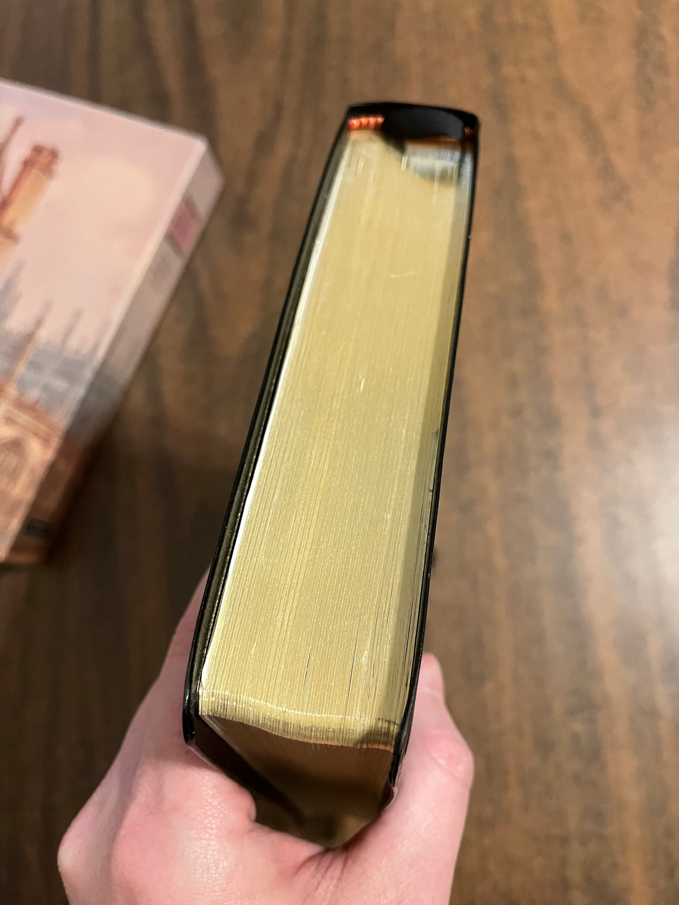 Bible has had some use, but I couldnt find any markings in the text. The gilt has some scratching to it. There are a few wrinkled pages in the front. Black letter text