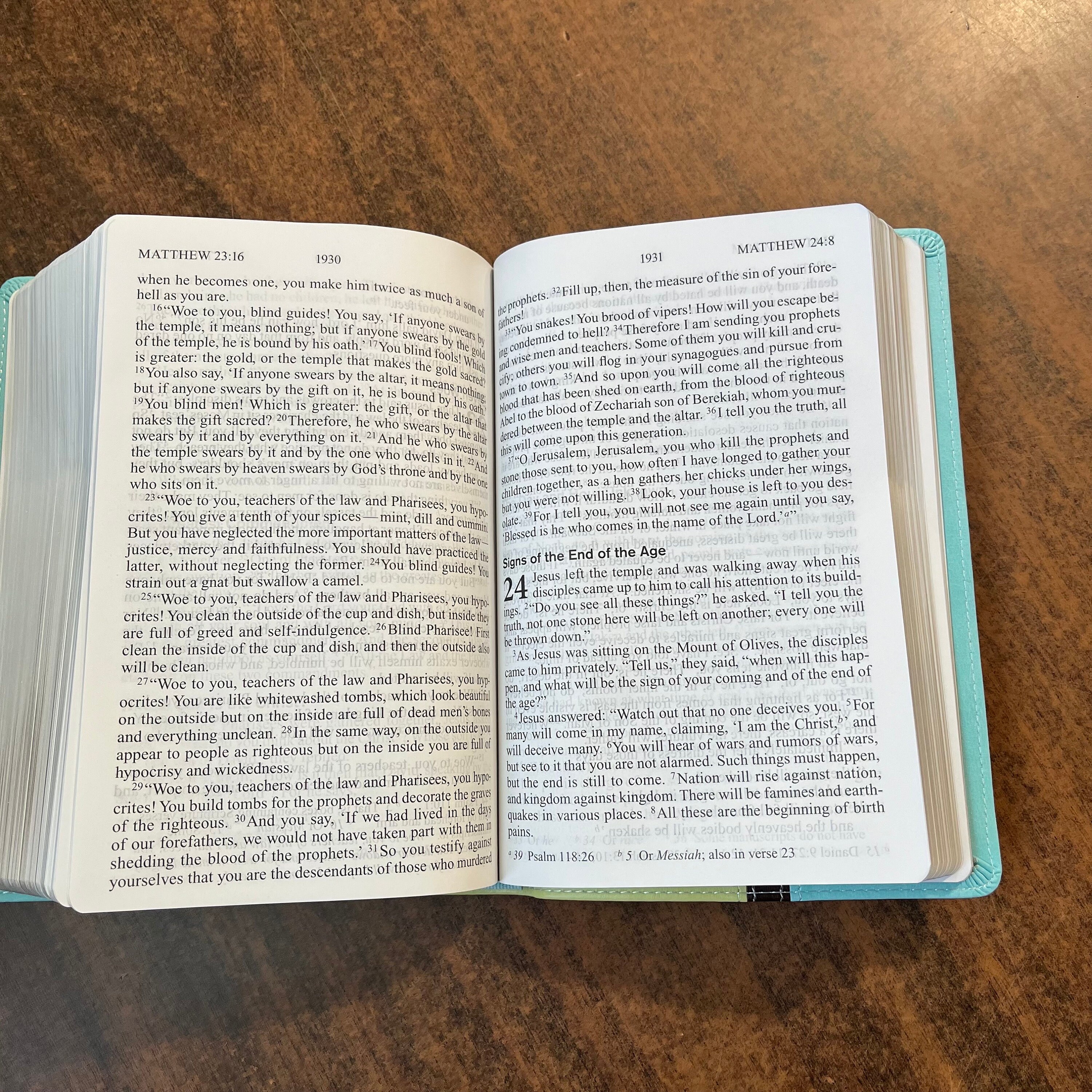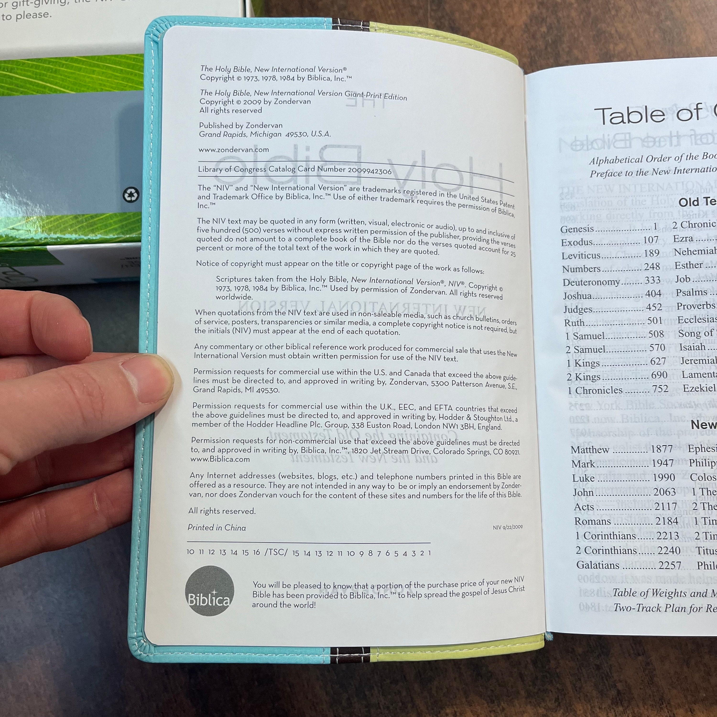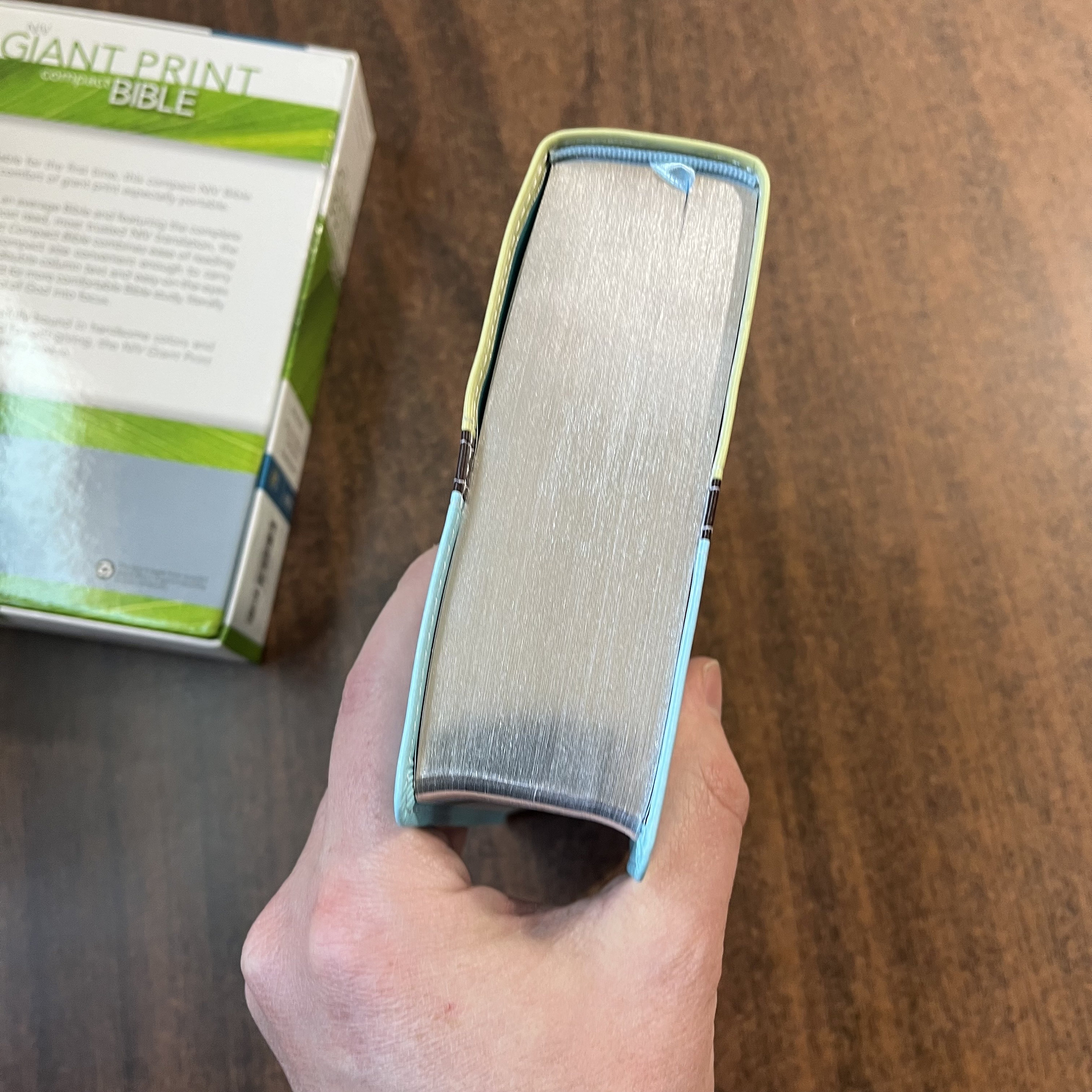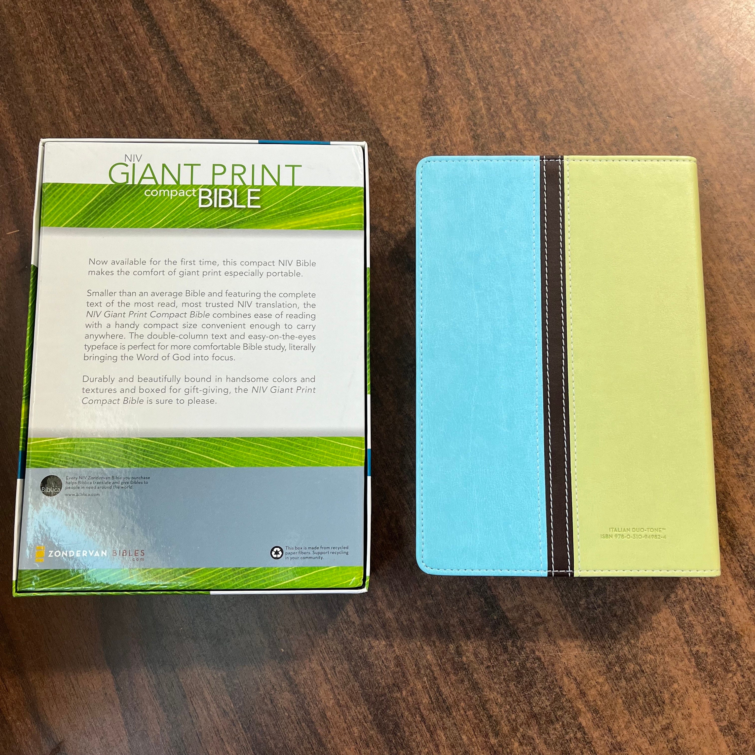 Please note that this is not the Full Size Giant print bible. Its the Giant print compact. It is a single column text, black letter. It has a fairly small frame and is a little thicker than most bibles its size.