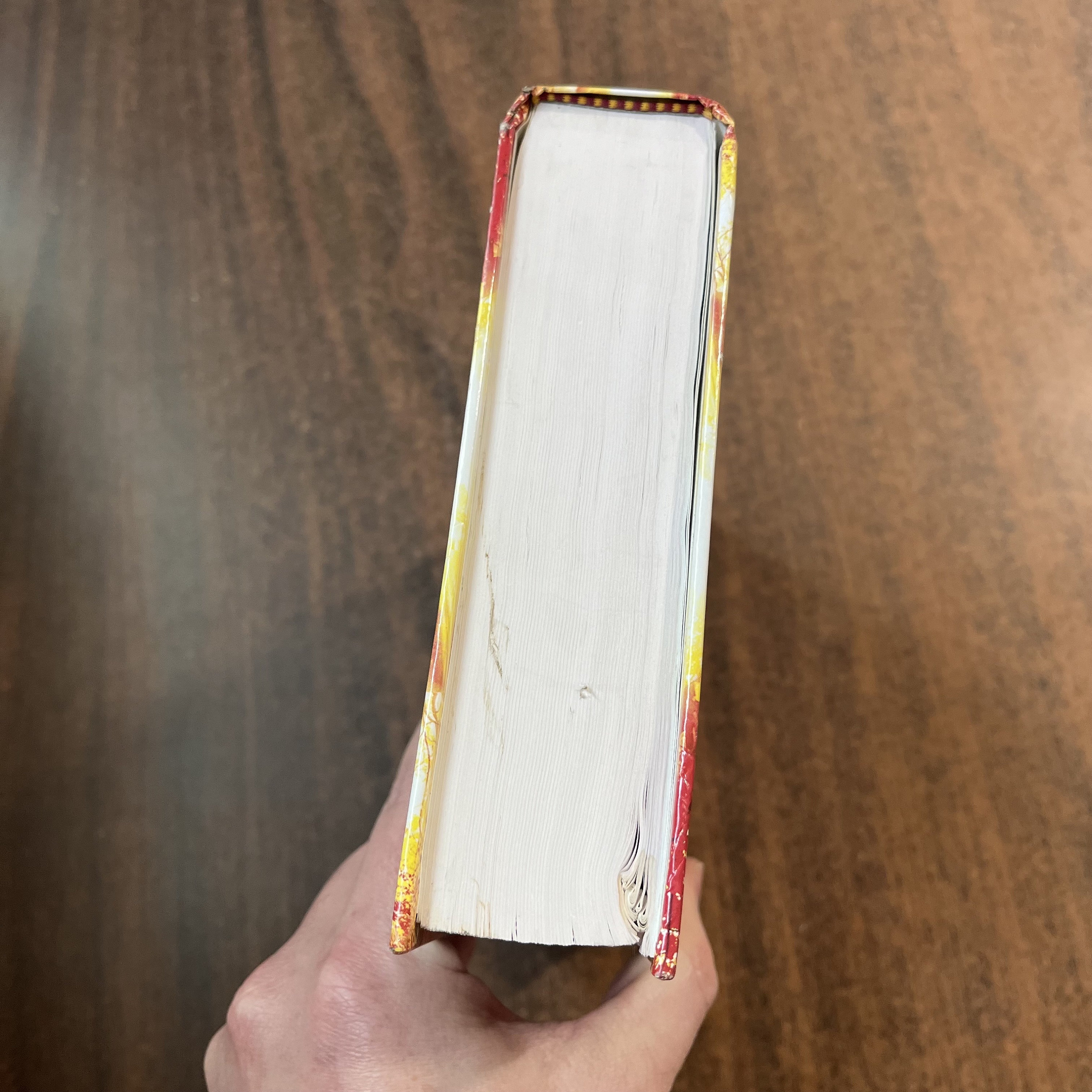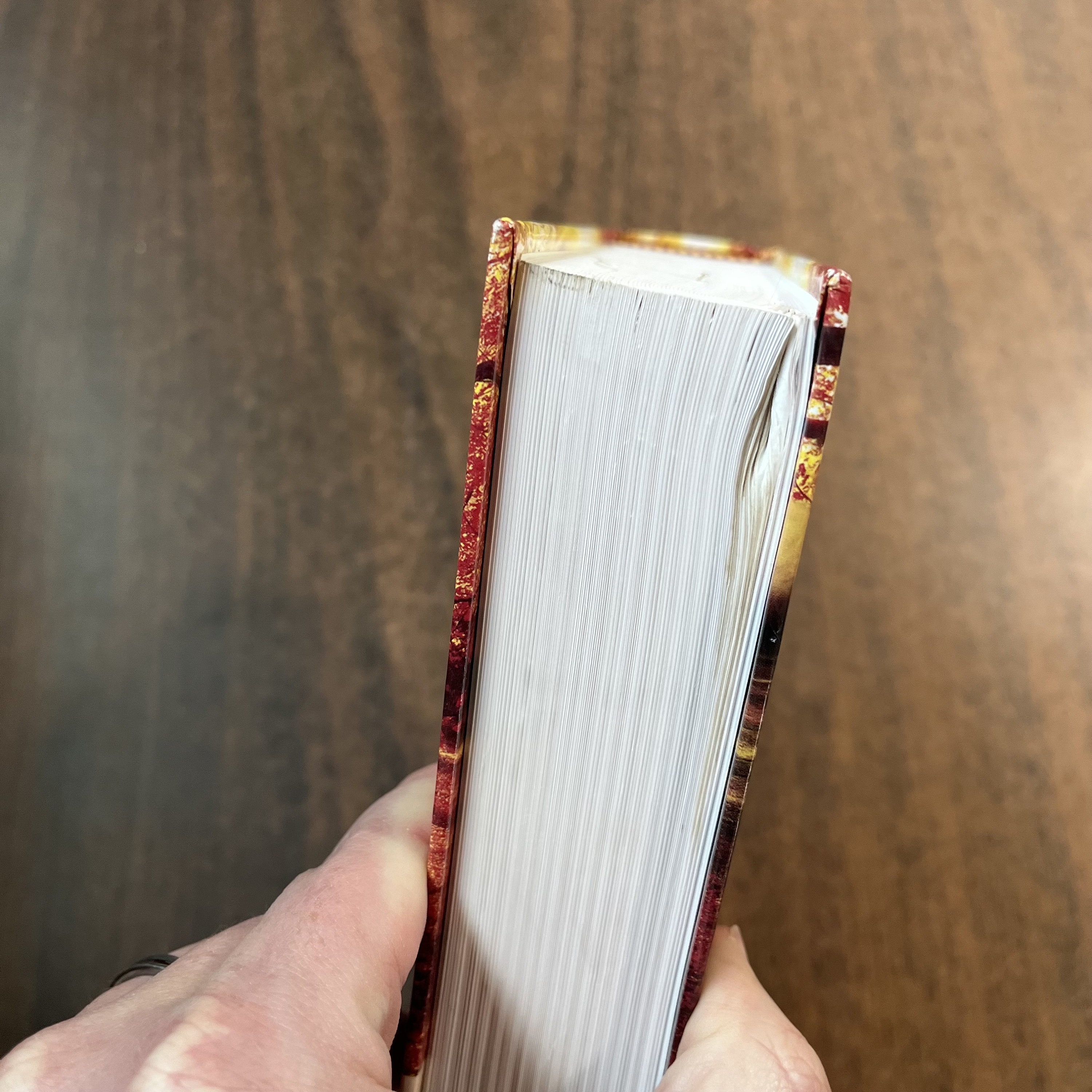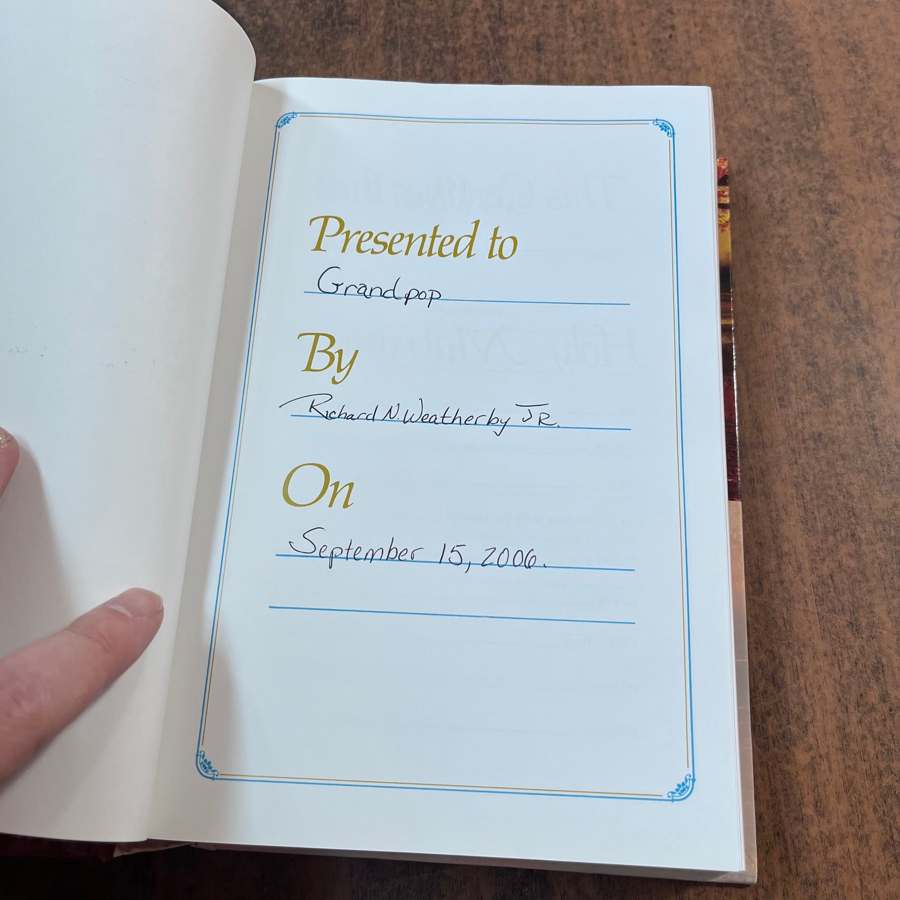 Appears to have had minimal use. The presentation page is filled out but I couldnt find any markings in the text. There are about the last 400 pages or so where the out corner of pages are smashed