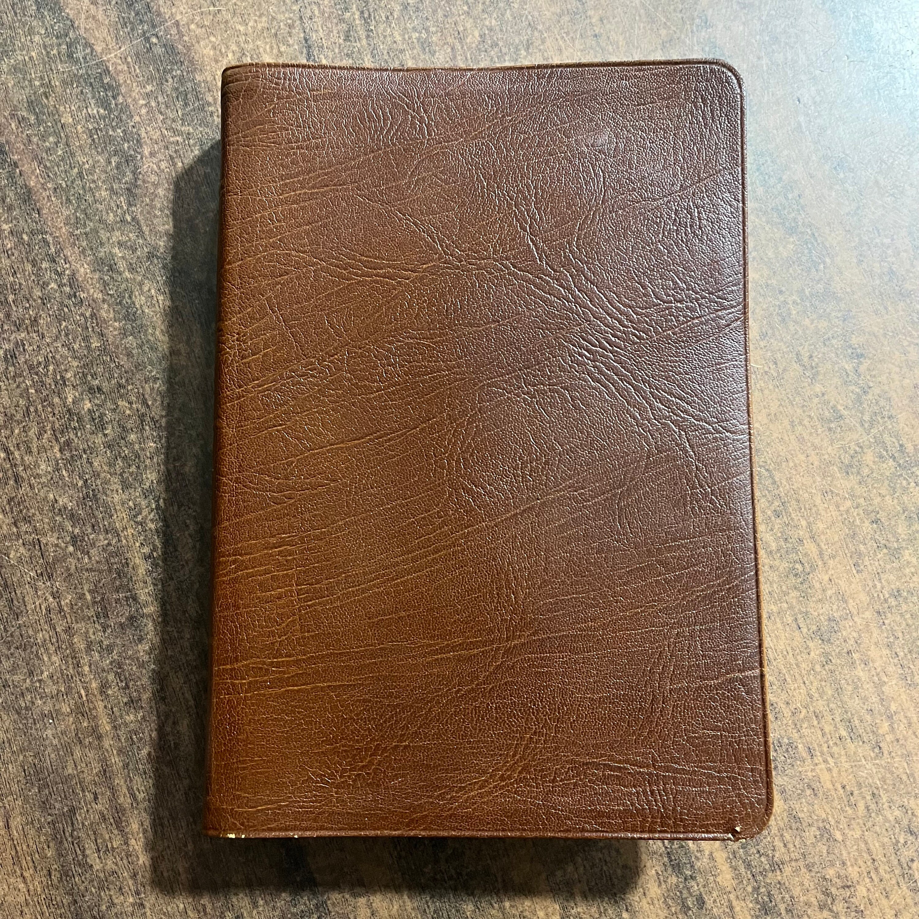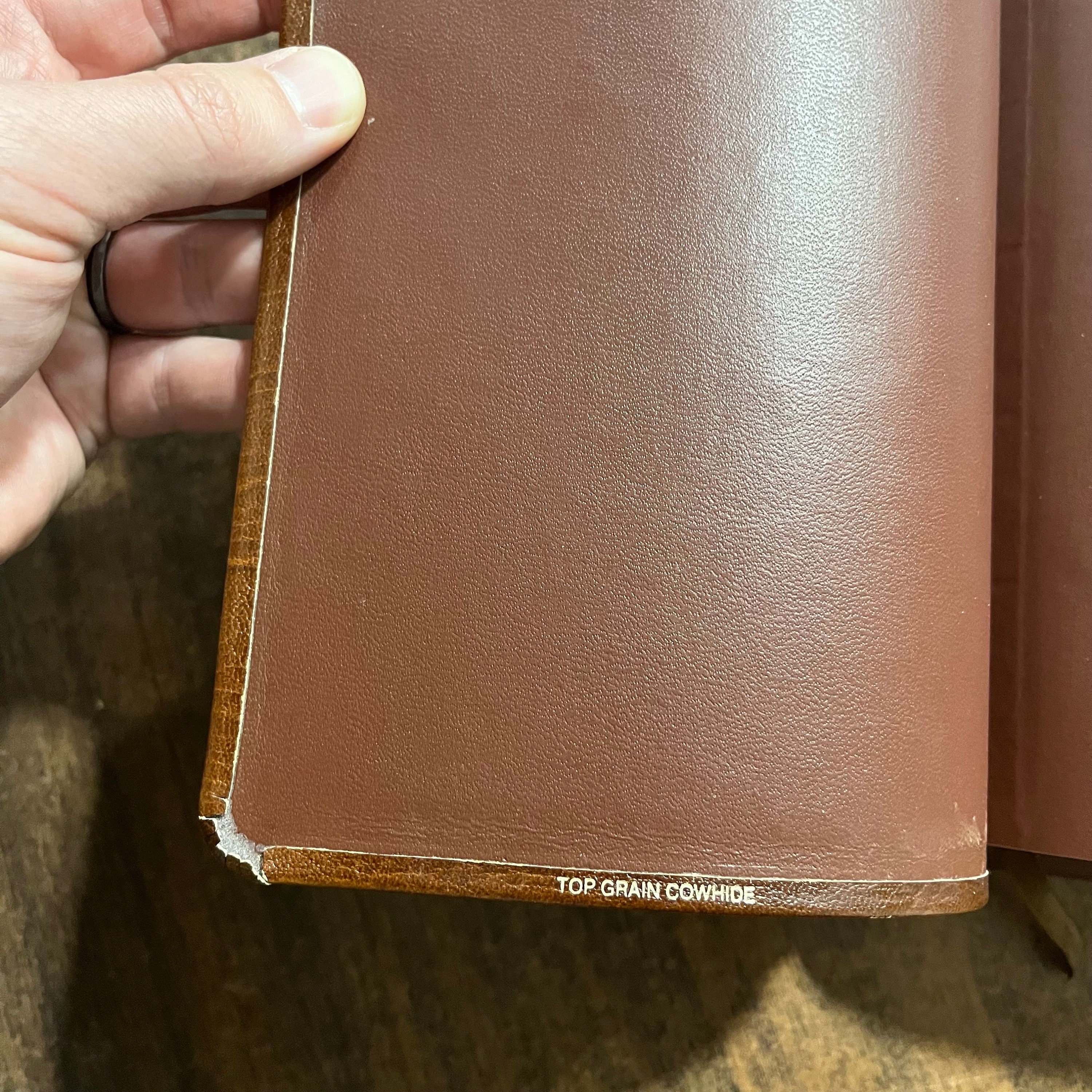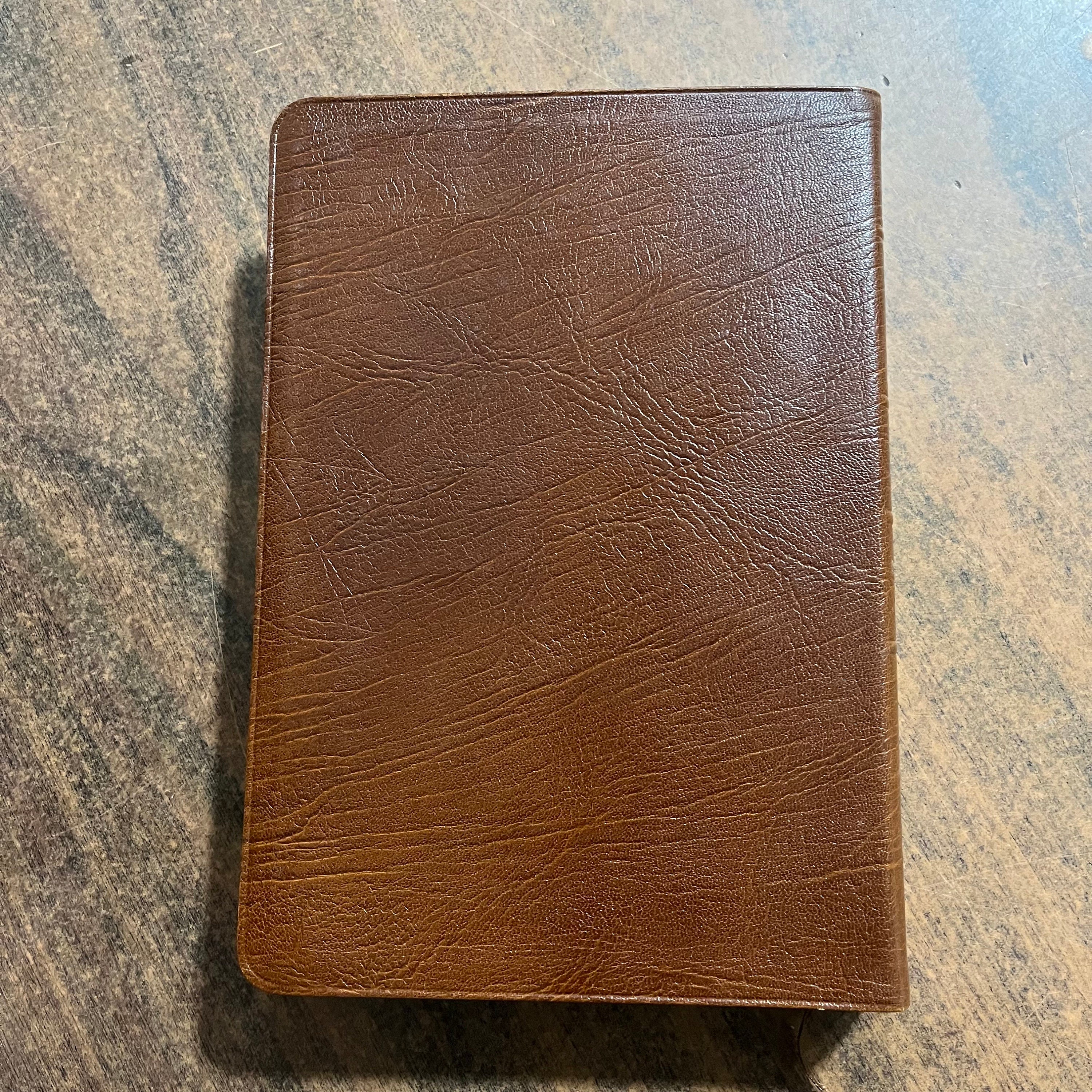 Used bible. I couldnt find any markings in the text. Has wear at side gilding and corners of spine. Inside corners of leather are coming up and need a big of glue to repair