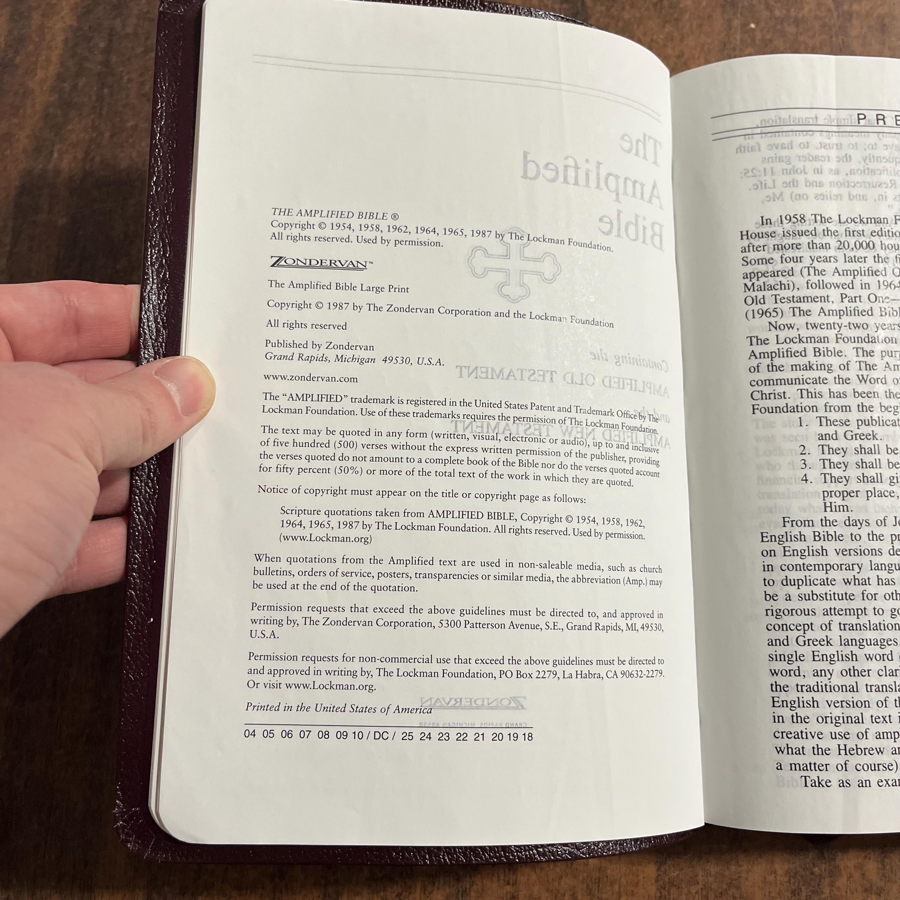 This is my shop for the out of print NIV bibles, but this is NOT an NIV Bible. I have started to add a few other out of print bibles. This is the previous edition of the Amplified Bible, what is now refered to as the 'amplified classic'. It is the copyright 1987 amplified bible