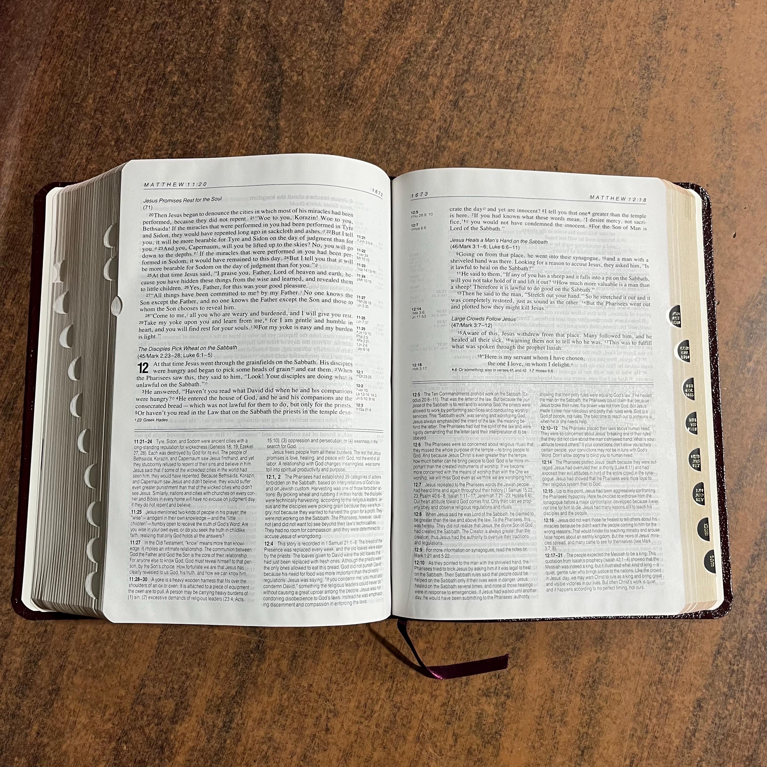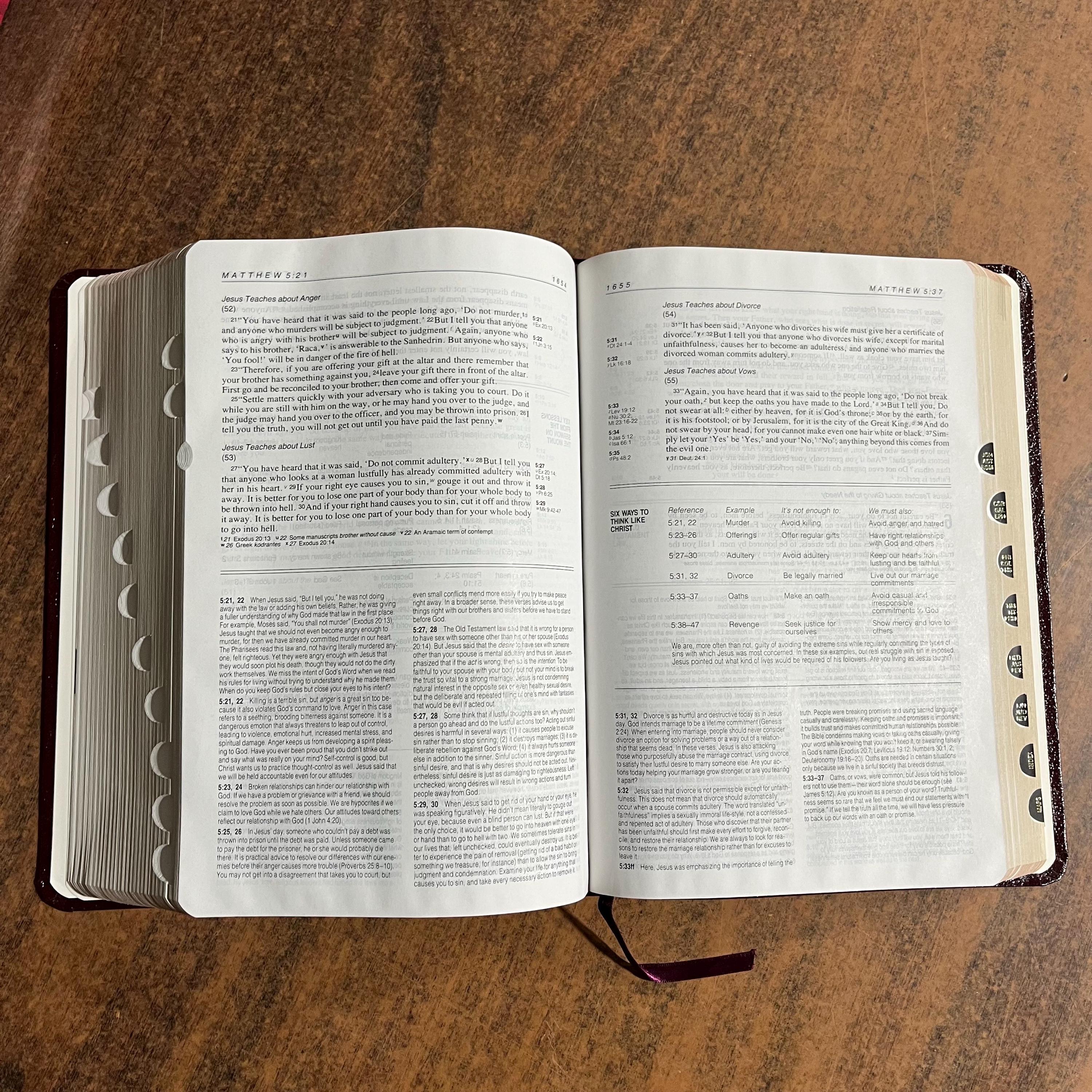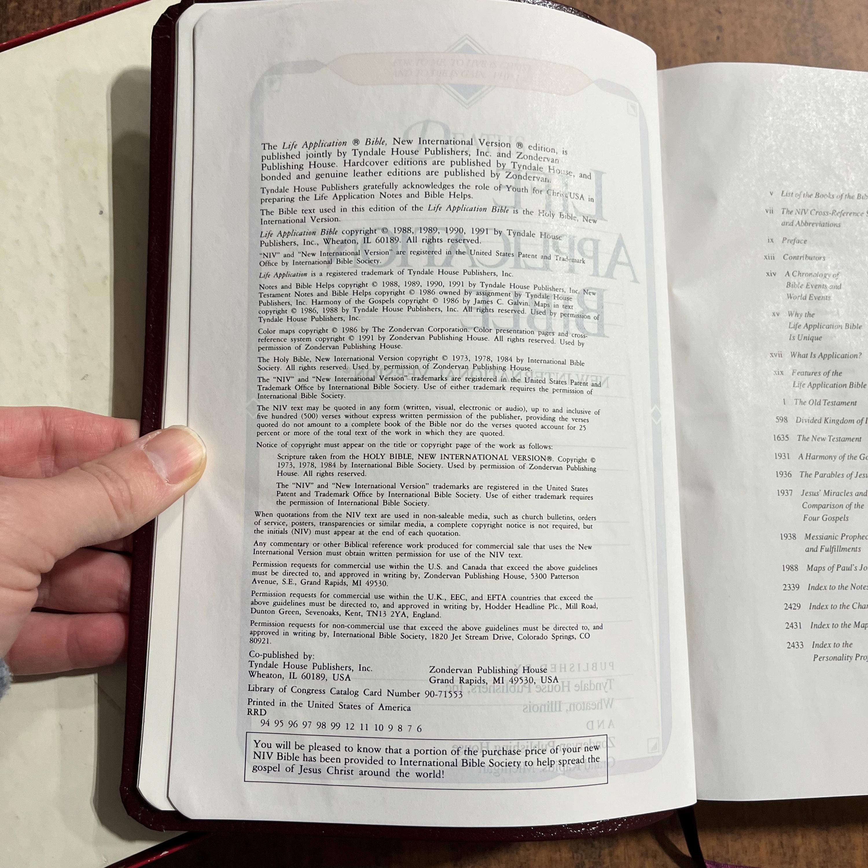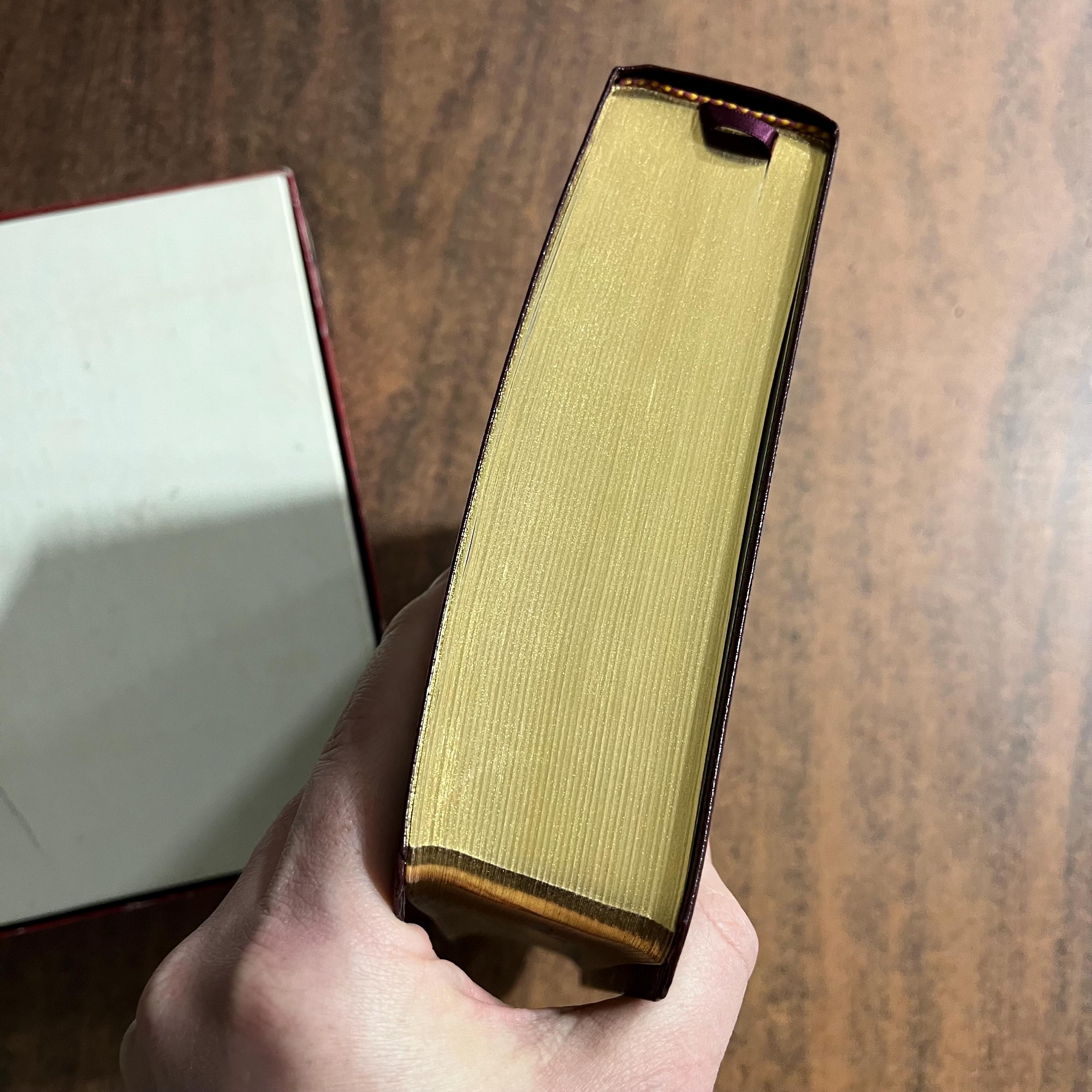 Appears like it hasnt been used. The presentation page is filled out and there is a long dedication in the front, but I couldnt find any markings in the text. There was also a name personalized on the front that has been professionally blocked out with the same machine used to put names on bibles