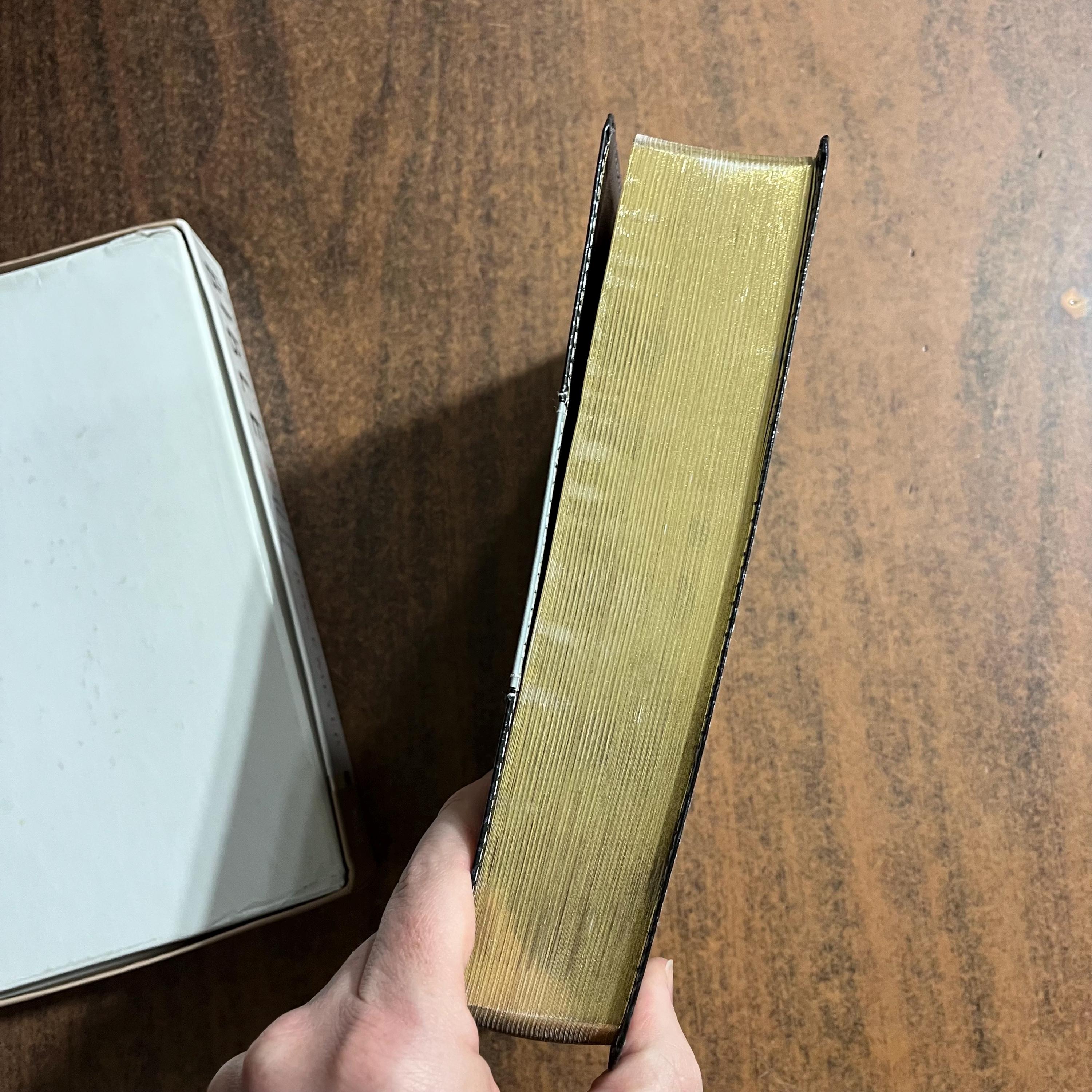 Appears nearly unused. I couldnt find any markings in the text. Some pages have a light ripple. Light scuffing to side gilding