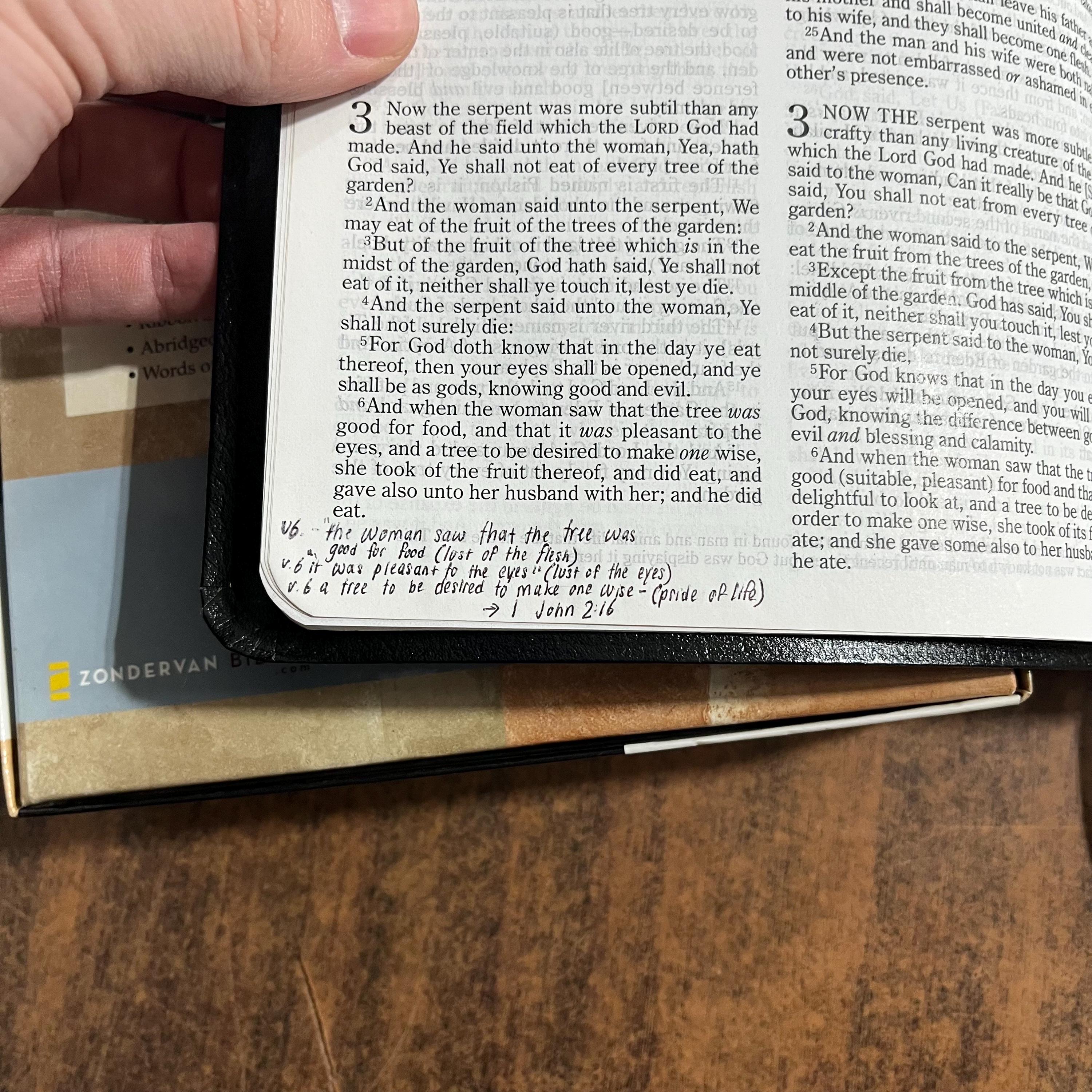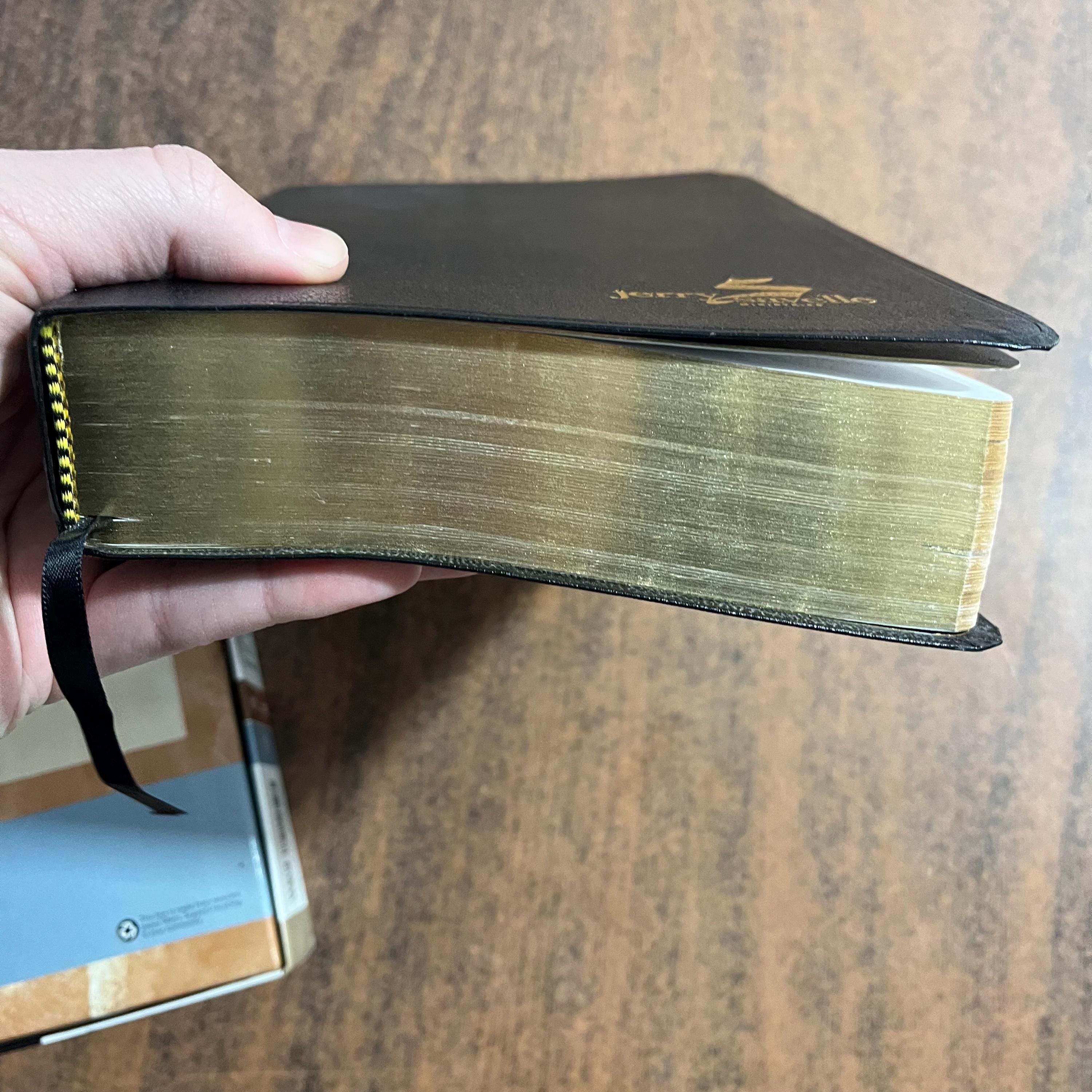 The bible has been used some. There is a date in the front and a quote written in the back. The only marking I could find in the bible text was a note at the bottom of a page in Genesis. This was a special edition from a certain ministry. Their logo is stamped on the front and there are a few extra pages in the front of the bible.