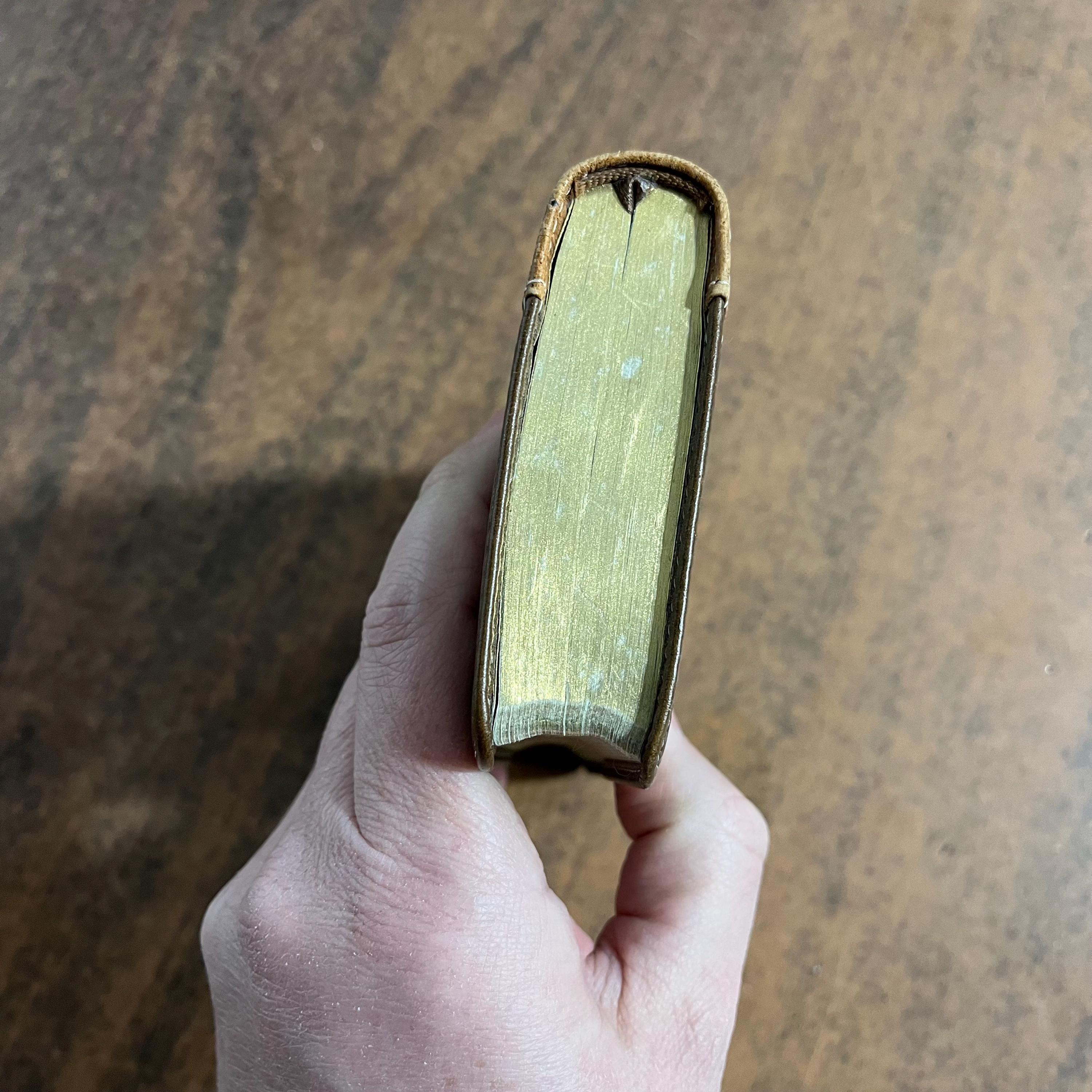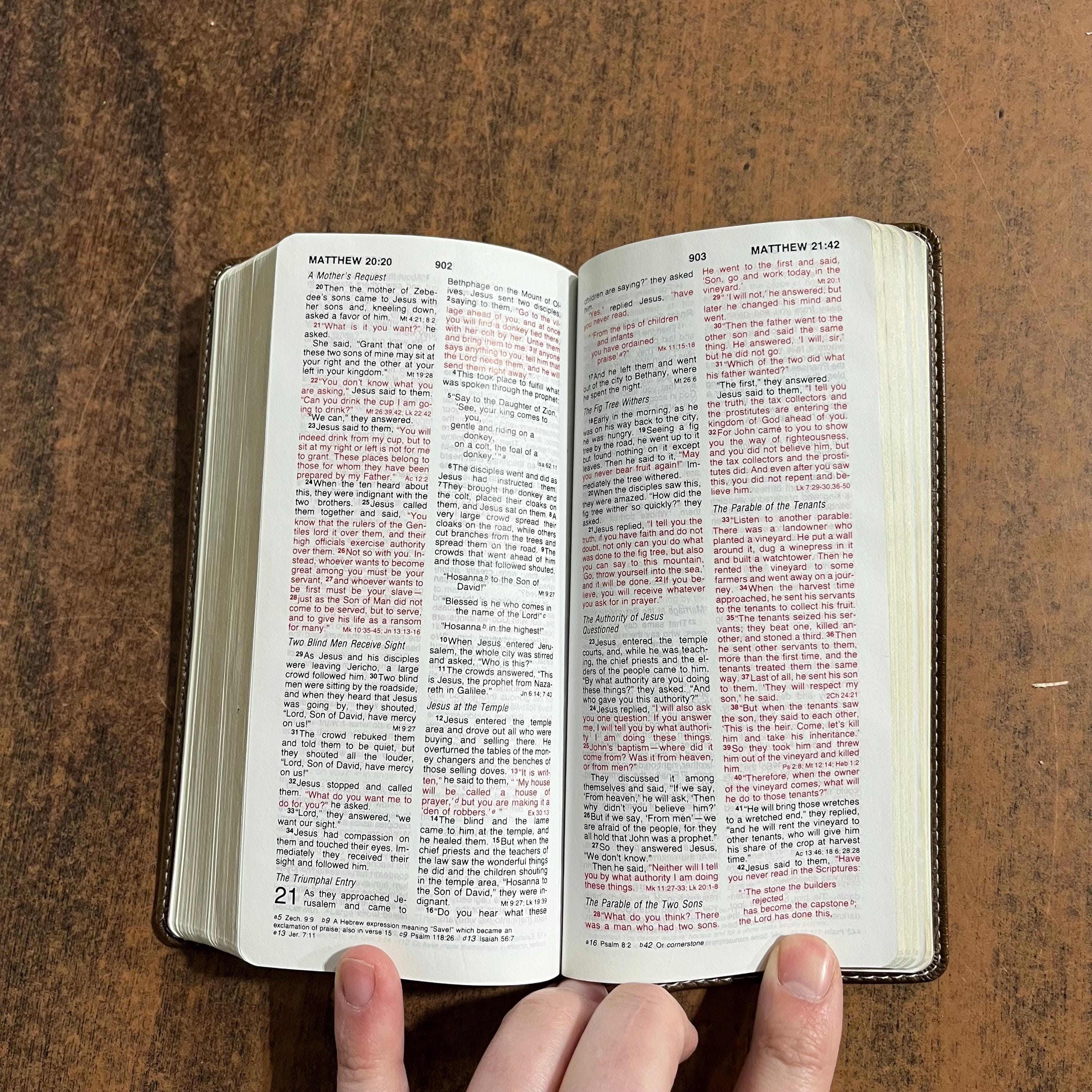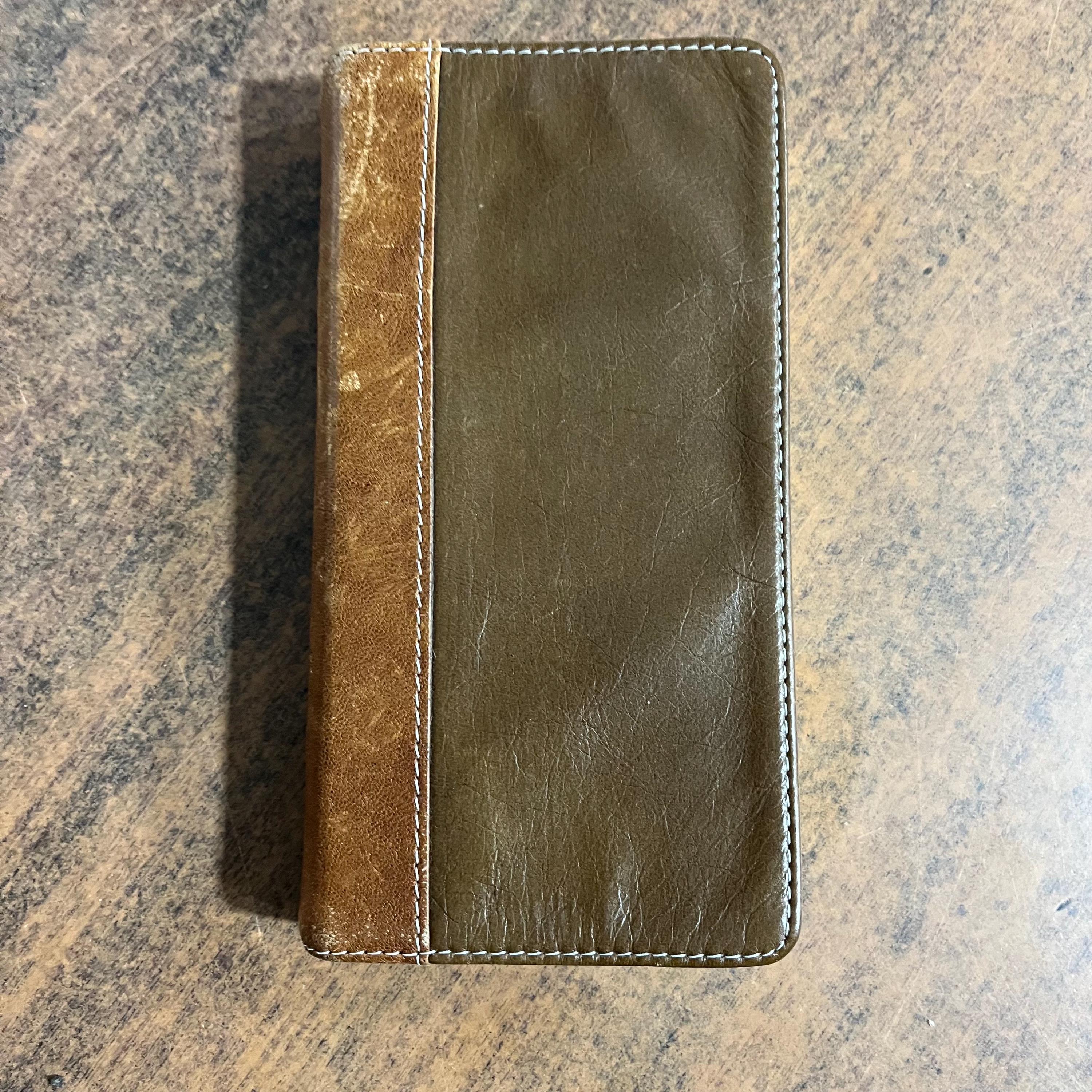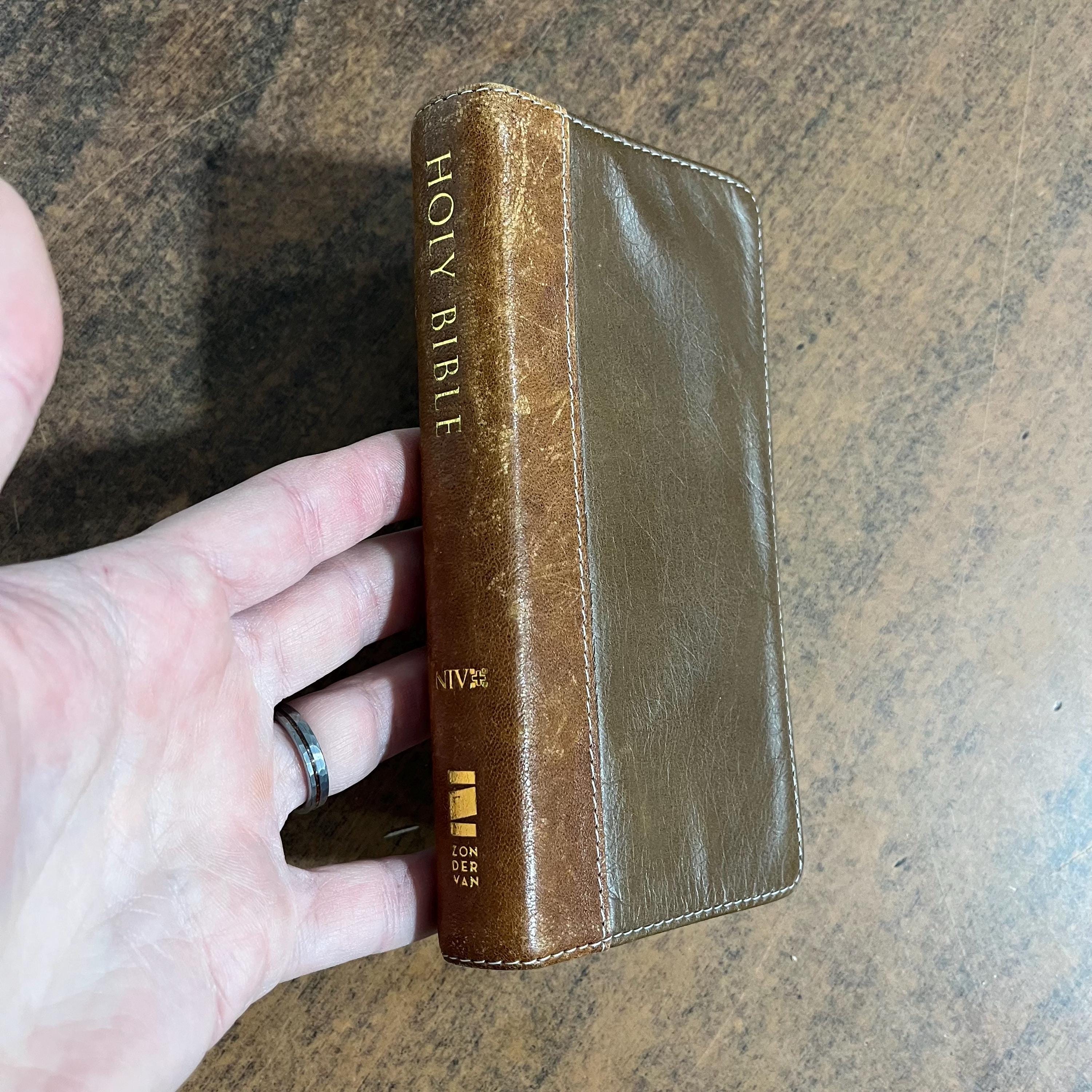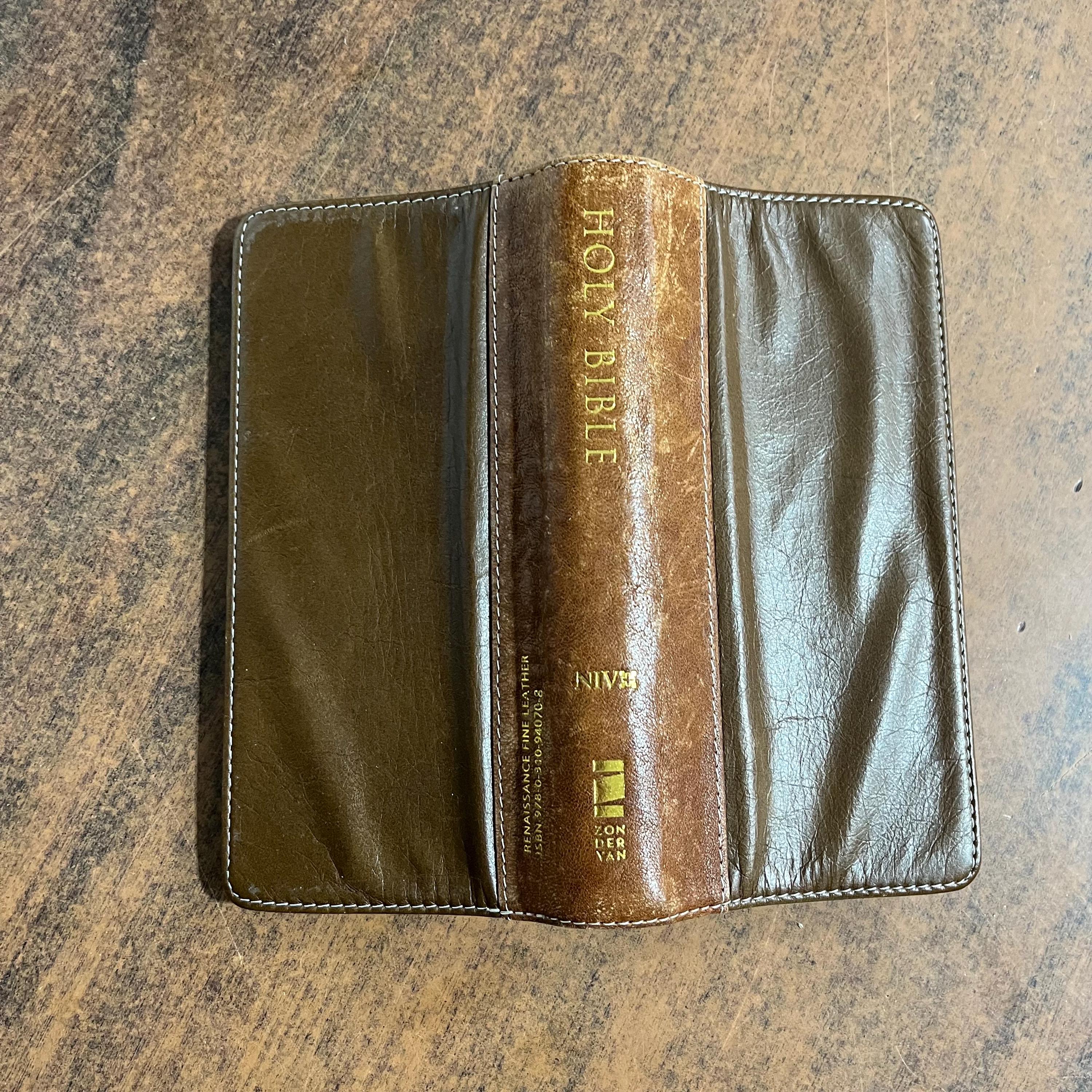 Used bible. Leather cover is gapping. I couldnt find any markings but it does have general wear